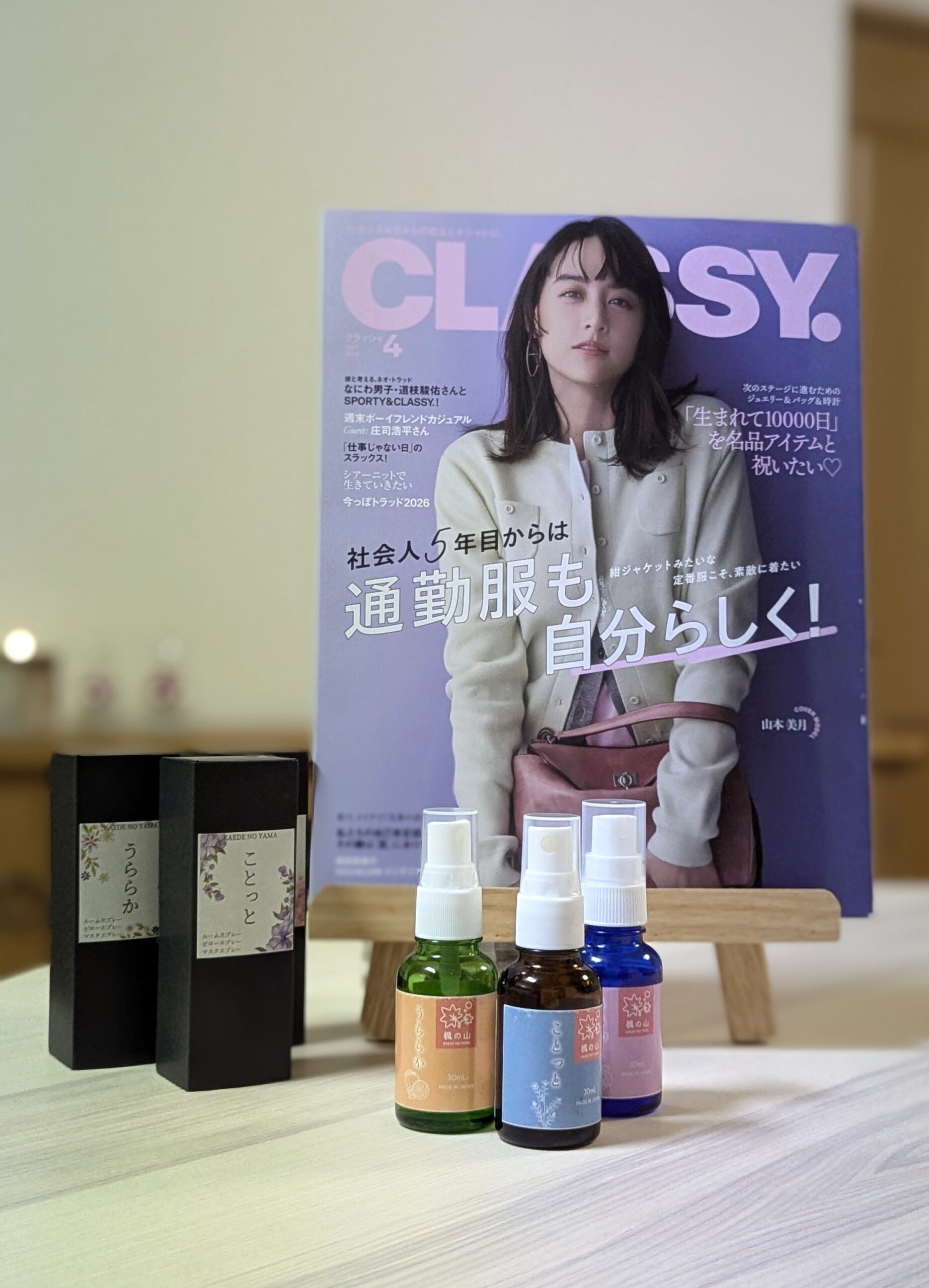 2026年2月28日発売の『CLASSY.』に、楓の山オリジナルアロマスプレーが紹介されました。